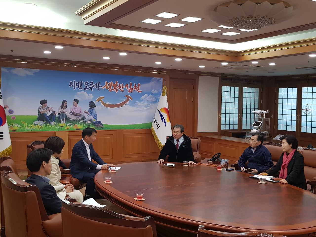 | 김천시장은 24일(목) 분만 산부인과 및 산후조리원 설치와 관련하여 시민들의 불편과 걱정을 하루빨리 해소하기 위해 경상북도 보건정책과장(김영길) 및 실무자와 면담을 가졌다. 이번 면담은 지난 17일 경북도를 방문하여 분만과 산후조리원 시설 확보를 위해 공공기관인 김천의료원의 역할을 강조하고 김천의료원에서 분만과 산후조리원을 운영할 수 있도록 건의한 사안에 대하여 방안 마련을 위한 실무 협의 자리로서,