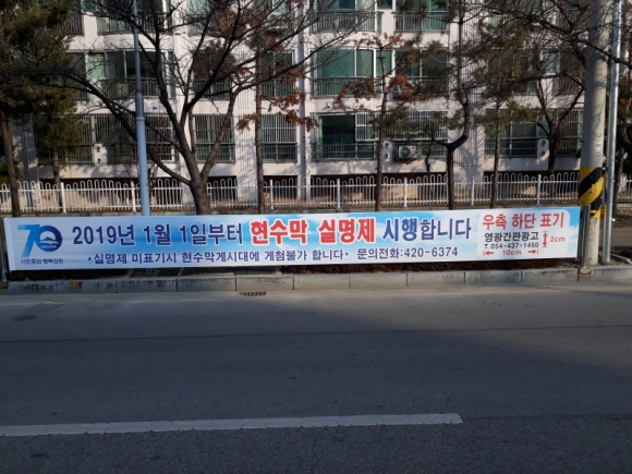 | 김천시(시장 김충섭)는 최근 증가하는 불법광고물에 대한 단속한계를 극복하고 깨끗한 도시미관 조성을 위해 2019년 1월 1일부터 옥외광고물(현수막) 실명제를 운영하고 있다고 25일 밝혔다.