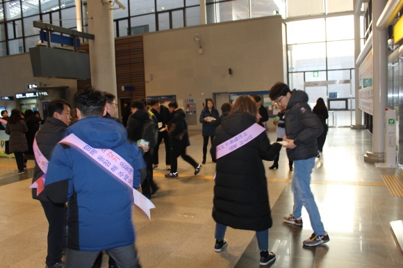 출근시간대를 이용해 KTX로 출근하는 공공기관 임직원들과 일반시민들을 대상으로 김천시 전입을 독려하고자 발 벗고 나선 것이다.