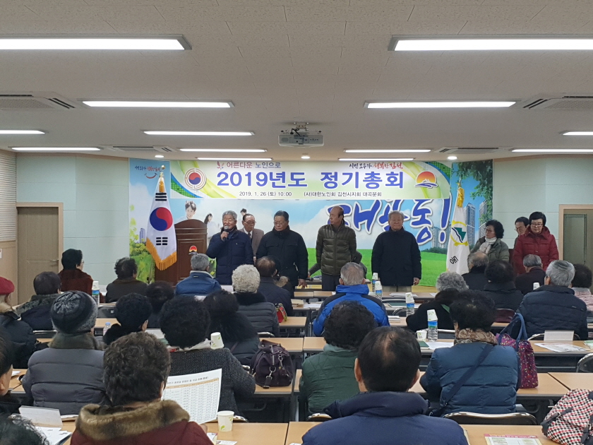 | 대곡동(동장 김동진)에서는 지난 26일 (사)대한노인회 김천시지회 대곡분회(분회장 이부경) 30개소 경로당 노인회장, 총무 등 60여명이 참석한 가운데 2019년 정기총회를 개최했다.