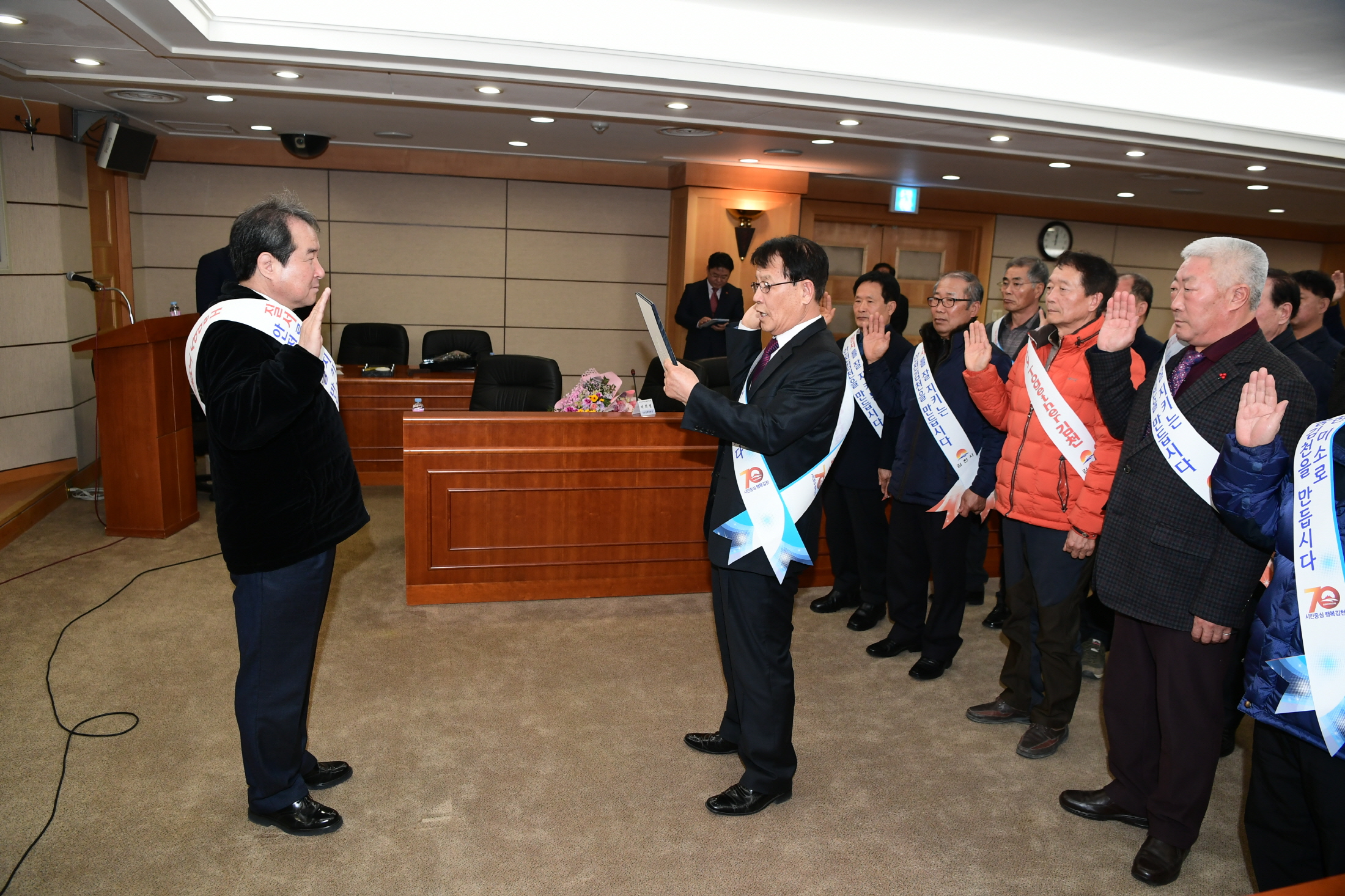 올해 신년회에는 각 읍면동별 이통장협의회장이 참석 한 가운데 2018년 결산보고와 김천시 이통장연합회 신임 임원진을 선출하였는데, 동참 결의 선언은 신임 이통장연합회장으로 당선 된 최상동 협의회장이 낭독하였다.