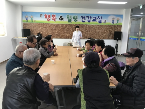 『행복&힐링 건강교실』프로그램은 혈압, 혈당, 콜레스테롤 등 기초적인 검사와 함께 만성질환 예방관리를 위한 교육, 스트레스 해소 및 기분상태의 개선을 위한 웃음치료 및 노래교실, 몸의 균형과 신체활동능력을 높여 줄 건강체조 프로그램을 운영하고 저염식 생활방법과 균형잡힌 식생활의 중요성을 어르신들의 눈높이에 맞춰 설명해드리고 일상생활에서 직접 실천할 수 있도록 영양실습을 실시한다.
