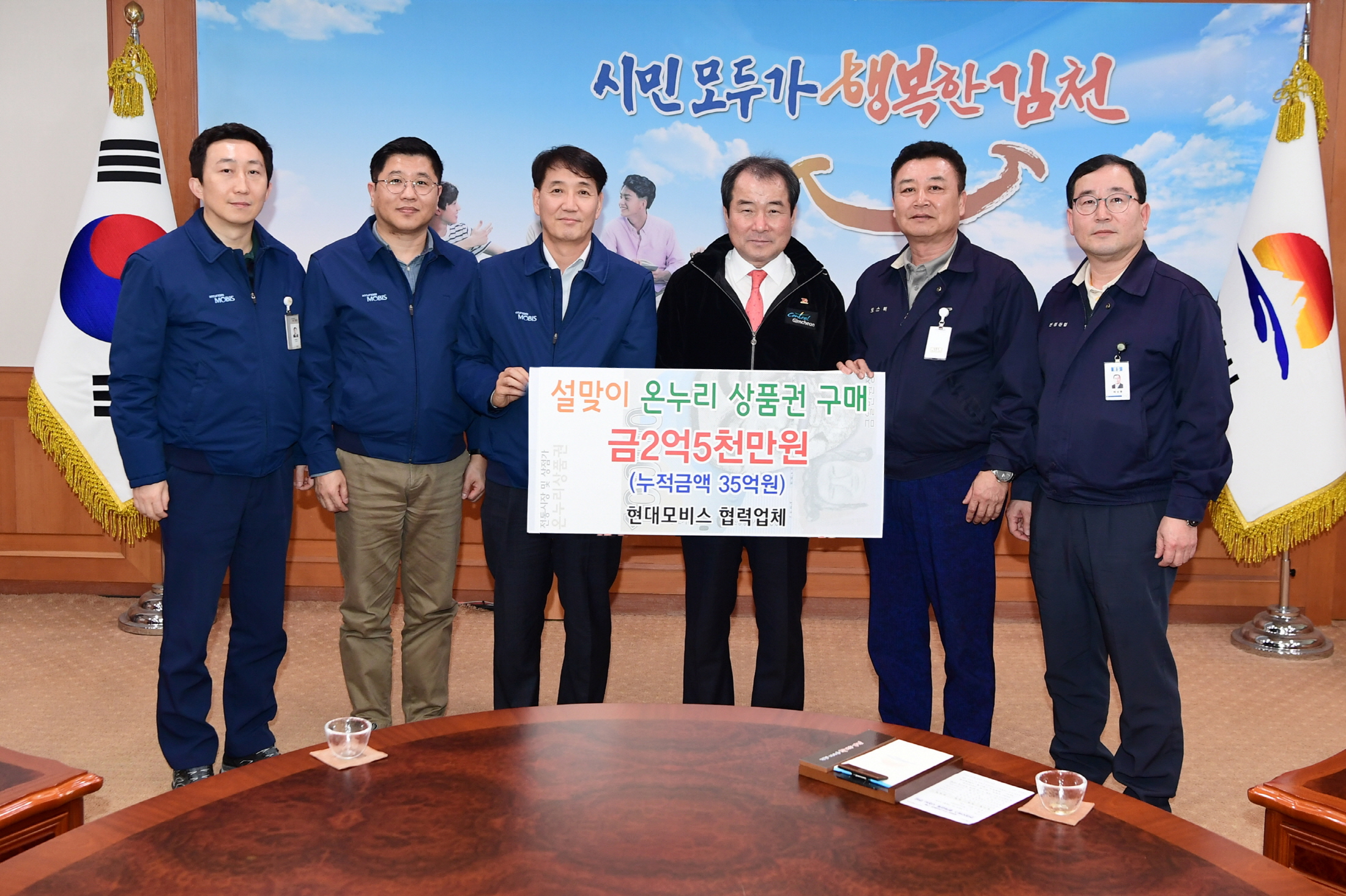 | 설 명절을 맞이하여 현대모비스(공장장 김용희)와 협력업체가 전통시장 및 지역경제 활성화를 위해 온누리 상품권 구매 촉진에 앞장서고 있다.