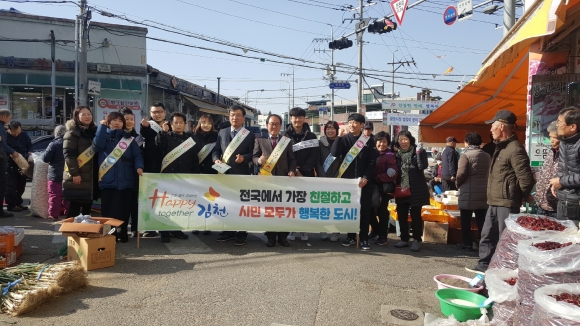 특히, 이날 황금시장은 설명절을 앞둔 대목 장날로 사람들로 북적였으며, 시장을 다니면서 상인들에게 ‘Happy together 김천 운동’인 시민들에게 친절하고 깨끗한 시장을 만들어 줄 것을 홍보하였으며, 아울러 김천愛 주소갖기 리플릿을 배부하는 등 인구증가 시책 홍보와 병행하여 추진하였다.