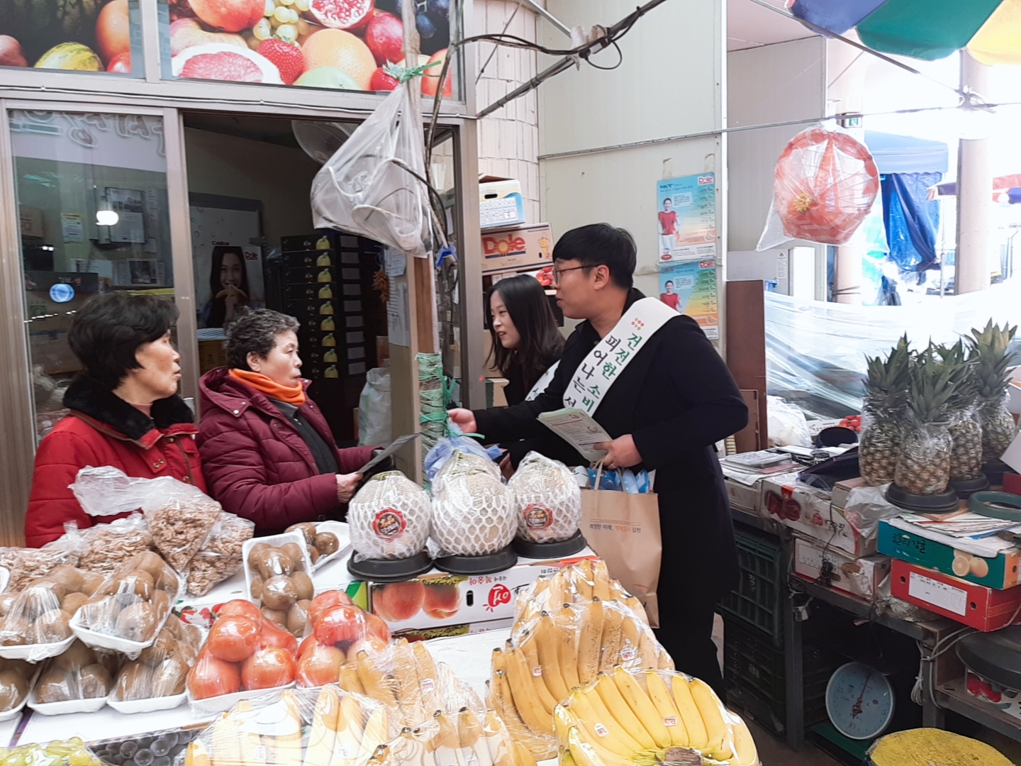 이날 캠페인은 설 명절을 앞두고 수요가 집중되는 성수품, 농축수산물에 대한 가격 동향을 파악하고, 계속되는 경기침체와 소비위축으로 어려움을 겪고 있는 전통시장 이용을 활성화하고자 물가조사 모니터요원, 공무원 등 20여명이 참석한 가운데 진행되었다.