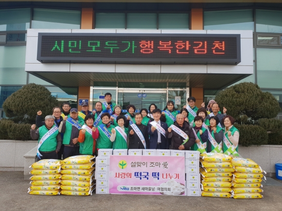 | 김천시 조마면 남·녀 새마을협의회(회장 박종근, 부녀회장 이윤옥)는 30일 2019년 설 명절을 맞이하여 사랑의 떡국 떡 나눔 행사를 개최하여 조마면을 따뜻하게 만들었다.