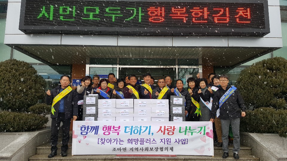대상자 선정은 마을 이장이 추천한 대상자를 자체 회의를 거쳐 20가구를 선정하게 되었으며, 특히 위문품은 설을 맞아 주위의 어렵고 힘든 복지사각지대의 면민을 위해 조마면 지역사회보장협의체 위원들이 정기적이고 자발적으로 내는 기금으로 마련되었다.