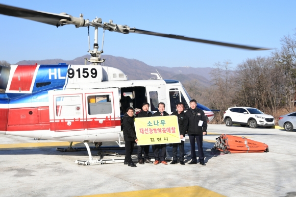 이번 항공예찰은 구미시와 연접한 지역에서 발생된 소나무재선충으로 인해 관내 울창한 소나무가 피해를 입는 것에 대한 실태를 파악하고 방제계획을 검토하고자 김충섭 김천시장이 직접 제안하여 실시되었으며, 김충섭 김천시장은 산림녹지과장, 산림보호계장이 참석한 항공예찰에서“재선충 피해확산을 막기 위해서는 항공예찰과 같은 신속하고 정확한 예찰을 통해 피해목 제거와 선제적 방제가 무엇보다 중요하다”며 국소적인 방제보다는 전체적인 피해방제계획을 수립하여 소나무재선충으로 인한 피해가 없도록 노력할 것을 당부했다.