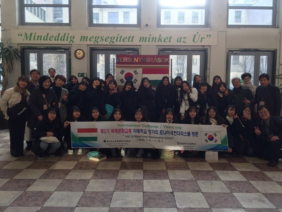 2017년과 2018년 인도교류에 이어 2019년 헝가리 Lonyay Street Secondary School과 국제교류차 방문하고 헝가리 학생들 가정에서 홈스테이를 하면서 해외문화 체험을 하고, 실생활의 과제해결을 위한 능동적이고 상호작용적인 학습활동을 통해 자신감과 문제 해결능력을 키우는 기회가 가졌으며, 국제사회의 다양한 문화를 접하고, 유럽문화를 체험하는 등 현장교육을 통하여 창의적인 인재를 양성하기 위한 교육활동을 하였다.