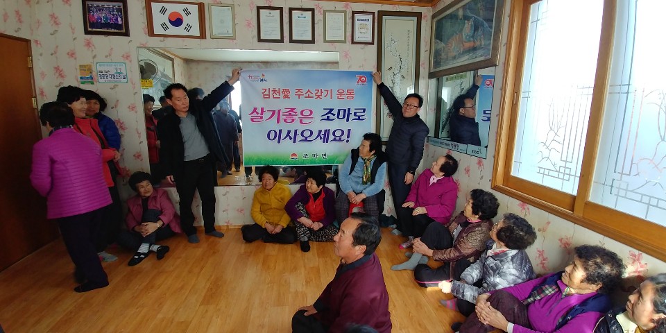 이날 합동세배를 한 후 어르신들에게 시승격70주년, 남부내륙철도 착공, Happy together김천 운동 및 KTX구미역 정차 문제 등 주요 시정을 쉽게 설명하고 소통의 시간을 가졌다. 노태옥 조마면 노인회장은 소외되기 쉬운 노인들에게 관심을 가져준것에 감사의 마음을 전하며 “앞으로 지역발전과 화합을 위해 더욱 노력하는 노인회가 되겠다”라며 감사의 마음을 전했다. |
