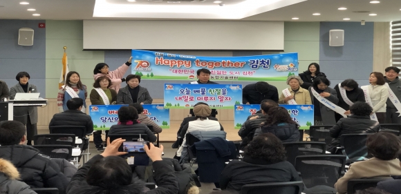 김천시는 민선7기 출범과 함께 시승격 70주년을 맞아 김천의 새로운 100년을 준비하고 올바른 시민 의식을 유도하기 위한 ‘Happy togeher 김천운동’을 추진하고 있다. 이번 캠페인은 친절·질서·청결운동에 걸맞는 구호를 교육생들이 함께 외치며 실천과제를 다짐하는 순으로 진행되었다.
