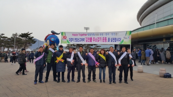 이와 함께 2019년 2월 10일 김천실내체육관에서 펼쳐진 한국도로공사 하이패스 배구 경기 관람을 위해 방문한 관중들을 대상으로 happy together 김천 친절·질서·청결 운동 및 김천 愛 주소 갖기 운동을 적극 홍보 하였다.