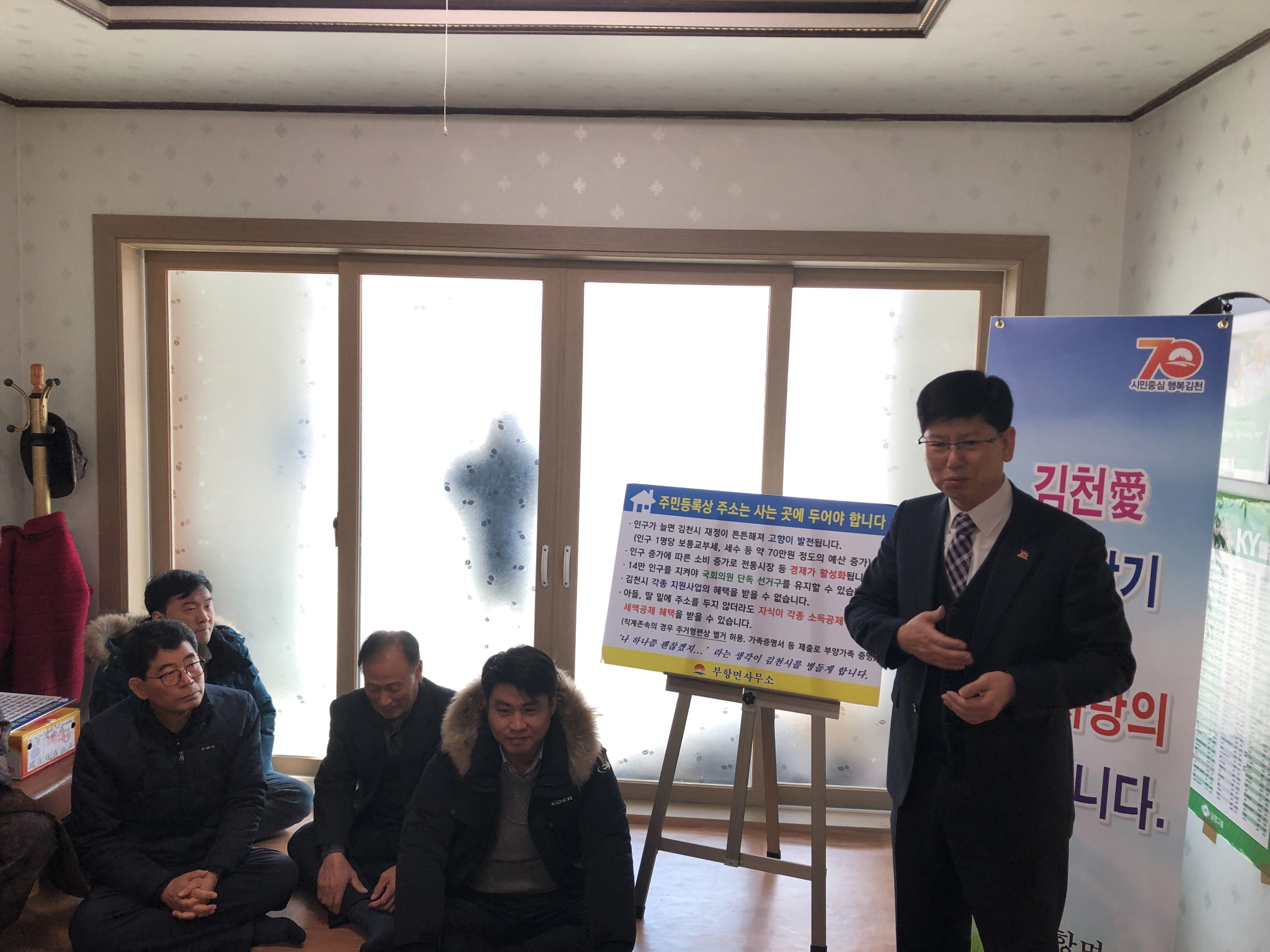 또한 경로당과 마을회관을 이용하는 어르신들이 인구가 늘어야 하는 이유에 대해 항상 확인할 수 있도록 김천시 주소 관련 안내문을 모든 경로당과 마을회관에 부착하였다.