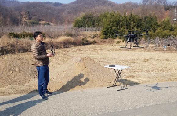 김천시는 지난 12일 남면봉천지구(남면 봉천리 1060번지 일원 291필지, 98천㎡) 지적재조사사업에 최신 측량기술인 고해상도 정사영상 촬영 무인비행장치 UAV(드론)를 활용해 현장조사·측량을 실시했다.