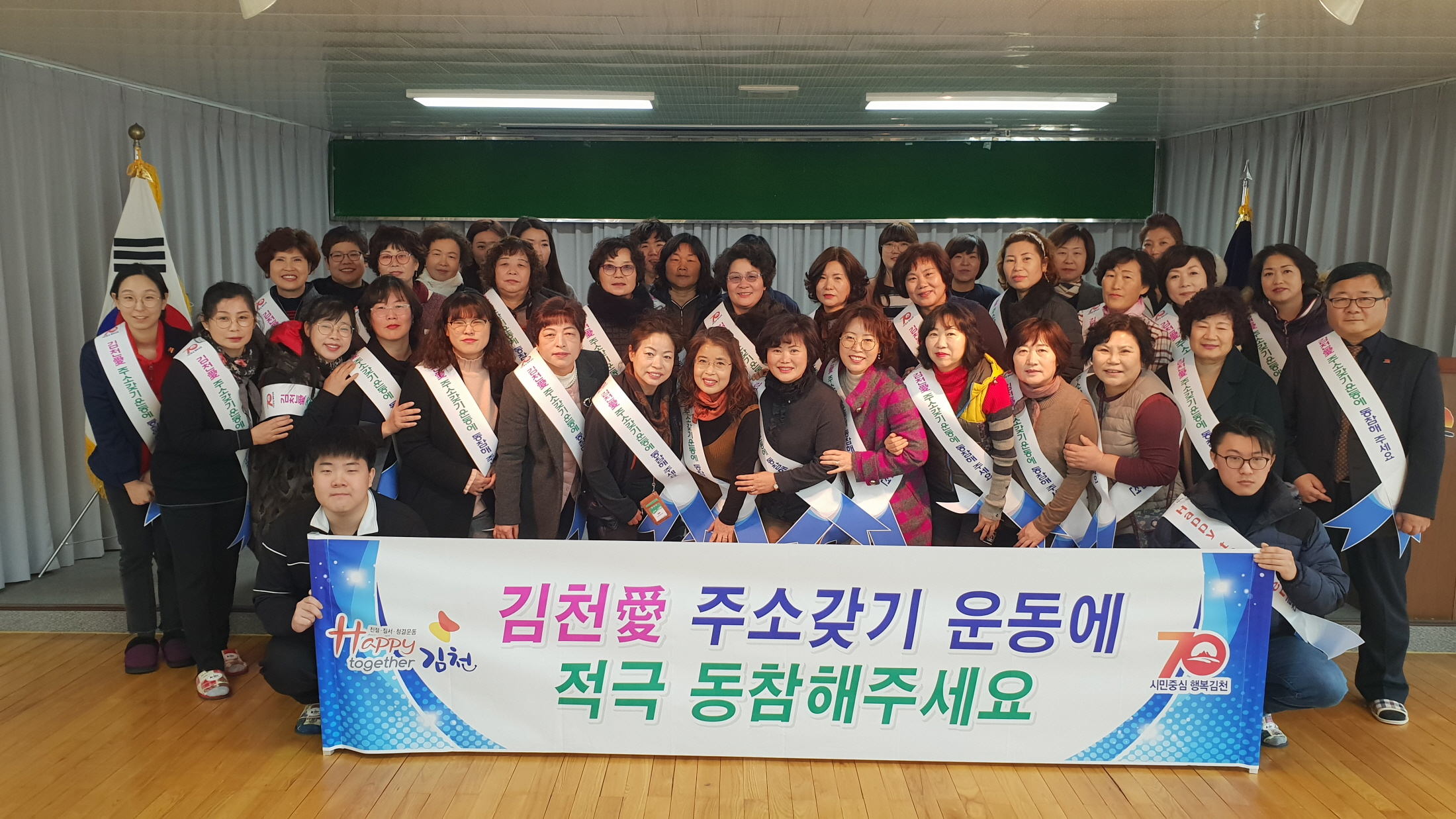 Happy together 김천 운동과 함께 이뤄진 김천愛주소갖기운동도인구감소의 사회적 분위기를 개선하고 우리지역 인구유출을 막아 20만 자족도시 건설을 위한 토대인 인구지키기를 해나가자는 결의로 아포읍과 생활개선회 민·관 합동으로 개최하여 그 의미를 더했다.