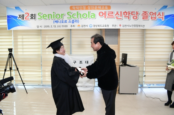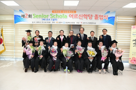 | 김천시노인종합복지관에서는 지난 13일 졸업생과 가족, 재학생, 성인 문해교육 관계자 등 70여명이 참석한 가운데 뜻깊은 제2회 Senior Schola(어르신 학당) 졸업식을 가졌다.
