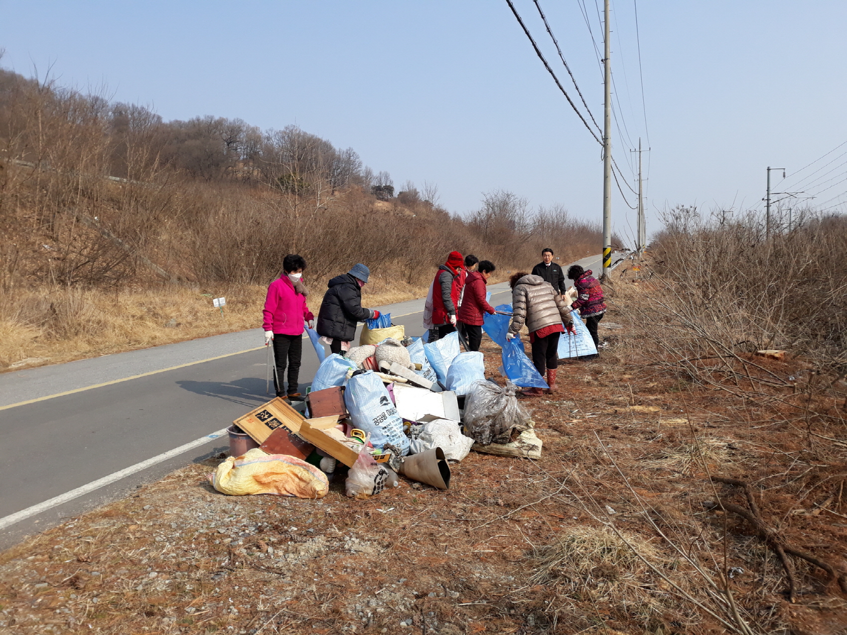 | 김천시 남면 초곡1리 새마을부녀회원(회장 나계월) 12명은 지난13일 마을 앞을 지나가는 514호선 지방도로변과 마을진입로 주변에 겨울동안 버려진 쓰레기를 수거하여 깨끗한 환경을 조성하였다.