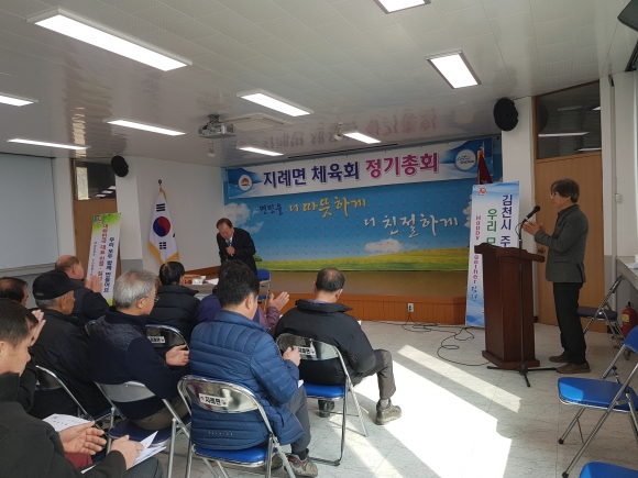 총회는 2018년 세입세출 결산보고를 시작으로 2019년 세입세출예산 보고, 회장단 및 임원선출, 마지막으로 체육회 발전을 위한 건의사항을 청취하는 순서로 진행되었으며, 문창곤 체육회장, 이진화 김천시의원, 이명기 김천시의원, 도규익 지례면장을 비롯한 기관단체장과 회원 100여명이 참석한 가운데 진행됐다.