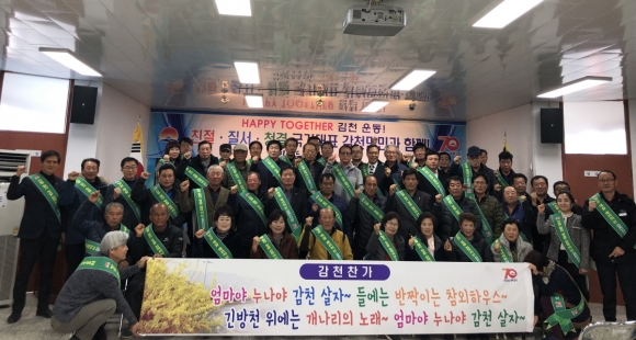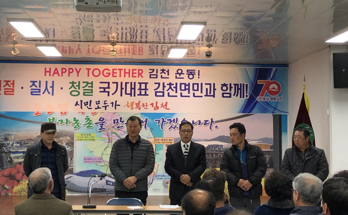 | 감천면체육회(회장 백형근)는 18(월) 감천면사무소 회의실에서 정기총회를 개최하였다. 정기총회에 앞서, 2019년도 시 승격 70주년을 맞이하여 시민의식 변화운동인 Happy together 김천운동, 김천愛 주소갖기 운동을 통해 성숙된 주민의식 함량과 고향을 아끼고 사랑하는 마음을 담아『15만 인구회복운동』에 적극 동참하기로 다짐했다.