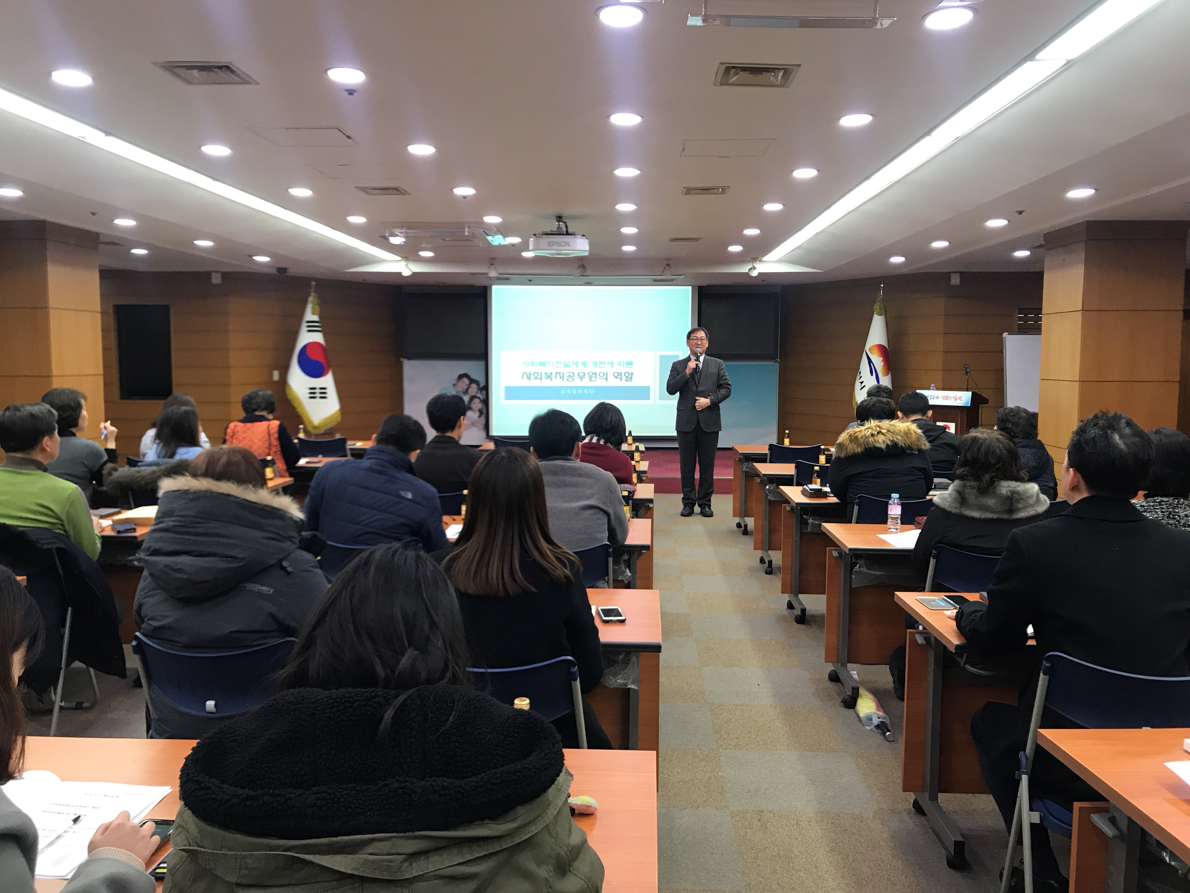 교육은 경북행복재단 박종철 수석선임연구위원이 사회복지전달체계 개편, 과정과 전망이라는 주제로 정부의 사회복지전달체계 개편과정과 사회복지공무원의 역할에 대한 강의를 하였으며,