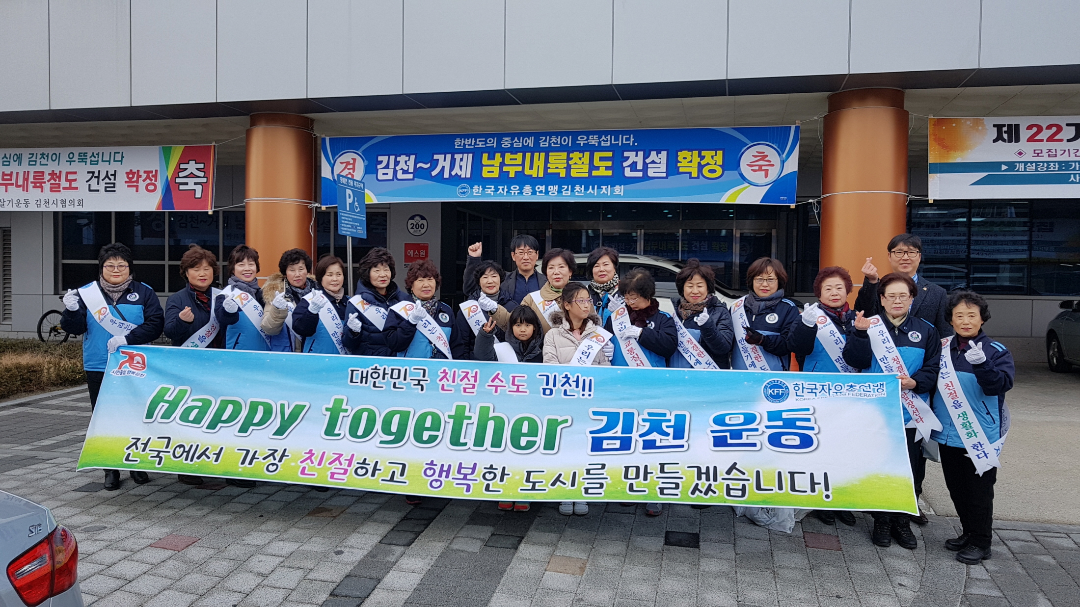 5일장이 선 지난 20일 자총 여성회 회원 25명은 김천시 황금시장에 모여 어깨띠와 현수막을 준비하고 전통시장은 찾은 상인들에게 김천 주소 갖기 운동과 친절, 청결, 질서의 Happy together 김천 운동 거리 캠페인을 벌였다. 회원들은 황금시장 입구에서부터 김천중앙초등학교까지 800m를 이동하며 대 시민 거리 홍보 캠페인을 전개했다.