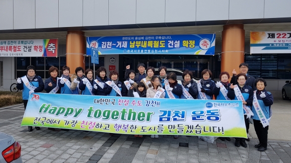 | 한국자유총연맹 김천시지회(이하 자총)여성회(회장 윤청자) 회원들이 『김천愛 주소 갖기 운동』과 『Happy together 김천 운동』 확산을 위한 범시민적인 동참을 호소하고 나섰다.