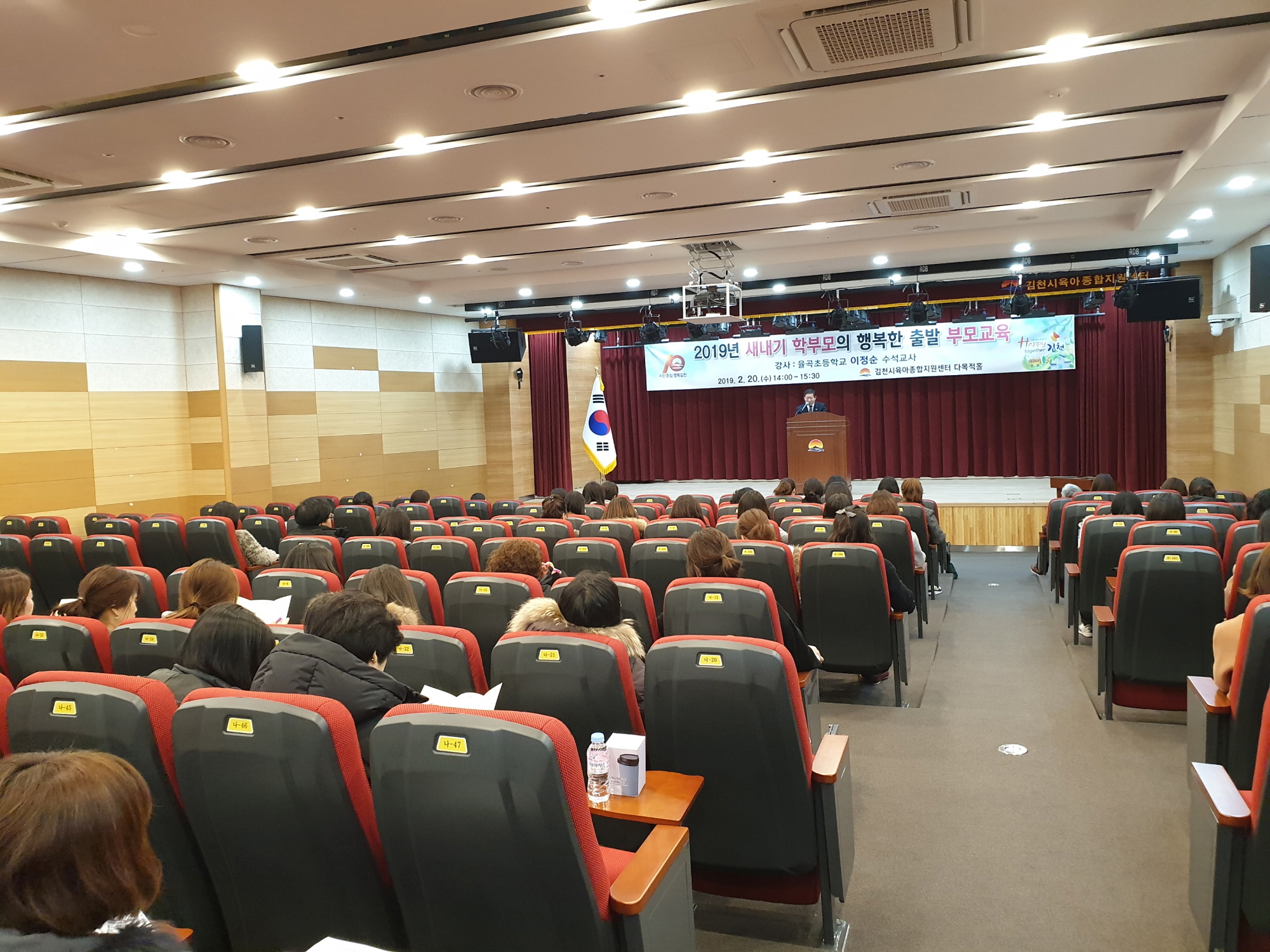 | 김천시 육아종합지원센터에서는 지난 20일(수) 영유아 부모 100여명을 대상으로 ‘2019년 초등학교 새내기 학부모의 행복한 출발’ 부모교육을 실시하였다.