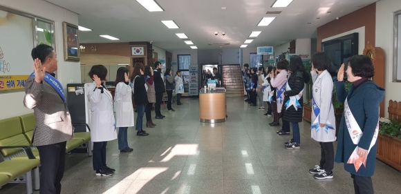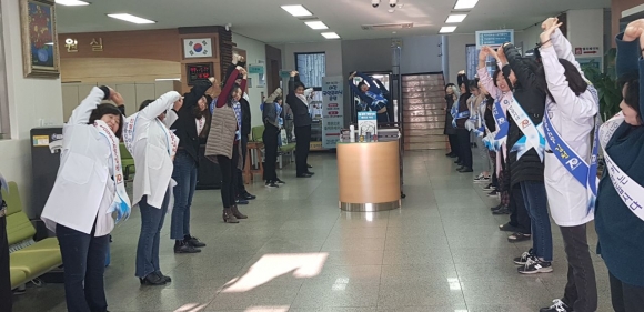 이날 보건소 직원 모두는 어깨띠를 패용하여 건강한 아침을 깨워주기 위하여 아침체조를 선보이는 자리가 되었으며, 민원인들에게 밝은 얼굴로 맞이하기, 서로에게 웃으며 인사하기 등 친절한 모습을 보이는 자리가 되었다.