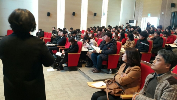 | 경상북도김천교육지원청(교육장 신정숙)은 지난 21일(목) 김천녹색미래과학관에서 관내 초등학교 5·6학년 담임교사 및 전담교사, 희망교사 120여명을 대상으로‘삶의 힘을 키우는 따뜻한 교육, 교사가 희망입니다!’라는 주제 아래 초등학교 5~6학년군 교과용 도서 활용 현장 교원 연수회를 실시하였다.