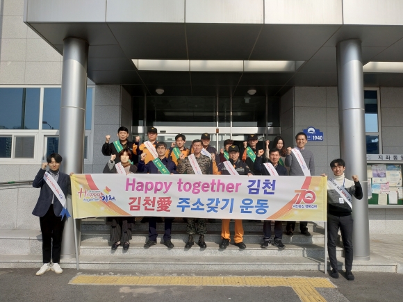 | 지좌동 행정복지센터(동장 김영기)와 김천소방서 지좌119안전센터(센터장 김구원)은 지난 2월 21일 합동으로 김천愛 주소갖기 캠페인과 가장 안전하고 살기 좋은 김천만들기 『Happy together 김천』 소방훈련을 실시하였다.