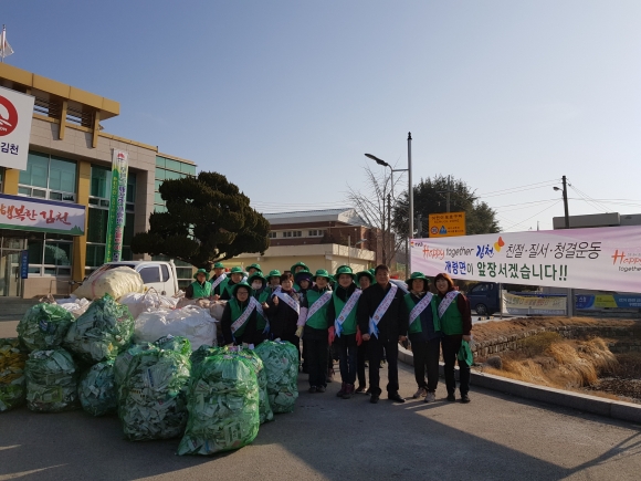 | 개령면새마을협의회(회장 서상철, 여향연)는 2월 26일(화) 회원 30여명이 참여하여 「happy together 김천」친절·질서·청결운동의 실천과제로 농약병 수거 작업을 실시했다.