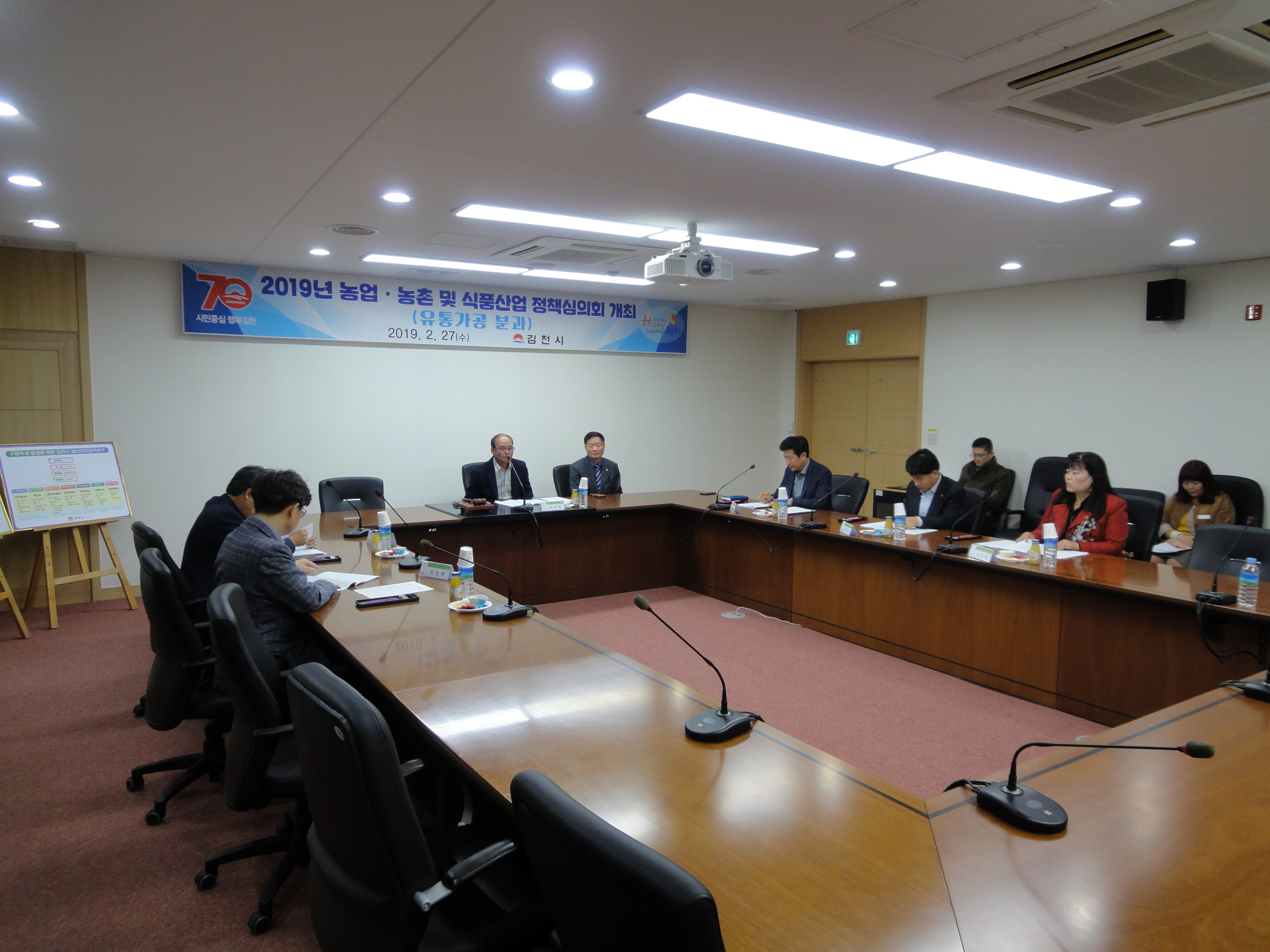 | 김천시(시장 김충섭)는 지난 27일 농업기술센터 2층 세미나실에서 심의위원들과 관계자들이 참석한 가운데 「2019년도 농업·농촌 및 식품산업 정책심의회(유통가공분과 심의회)」를 개최했다.
