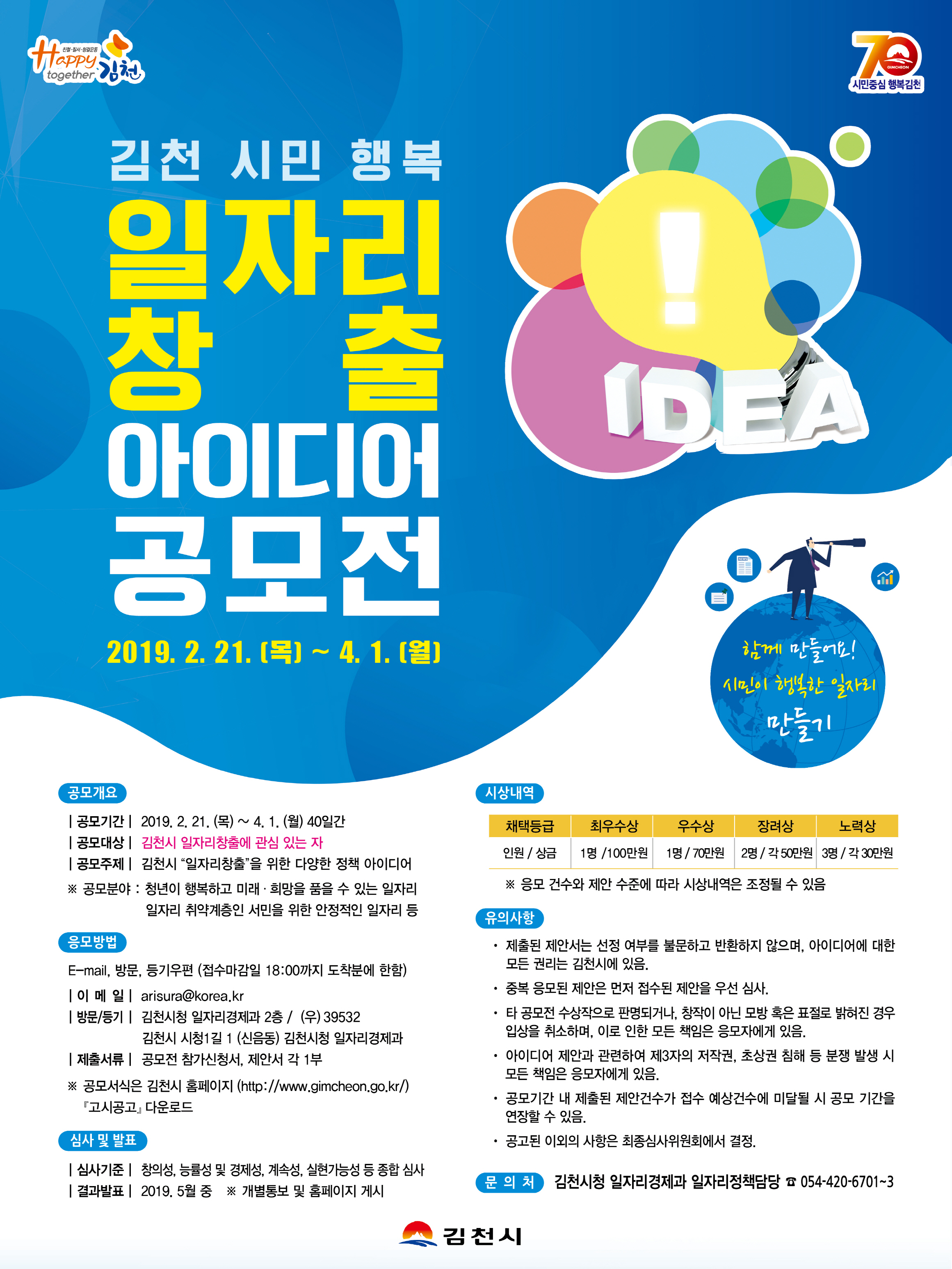 Happy together 김천 『일자리창출 아이디어 공모전』및 『파트 타임형 일자리 사업』 안내
