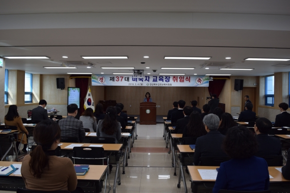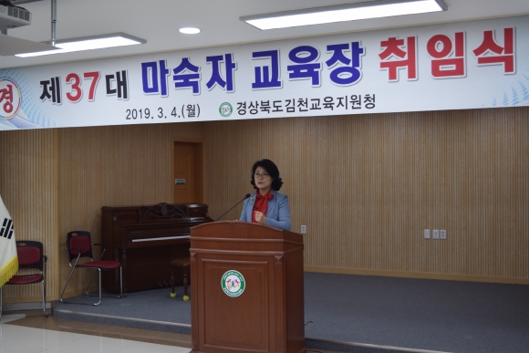 | 경상북도김천교육지원청(교육장 마숙자)은 3월 4일 오전 10시 3층 대회의실에서 「제37대 마숙자 교육장」취임식을 가졌다.