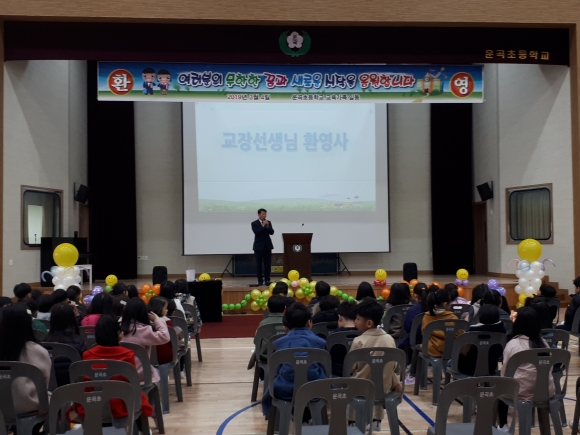 | 운곡초등학교(교장 김희수)는 지난 4일 강당에서 입학식을 진행하였다. 입학생 127명은 교직원, 학부모들의 축하 속에 운곡초등학교의 새로운 가족이 되었다.