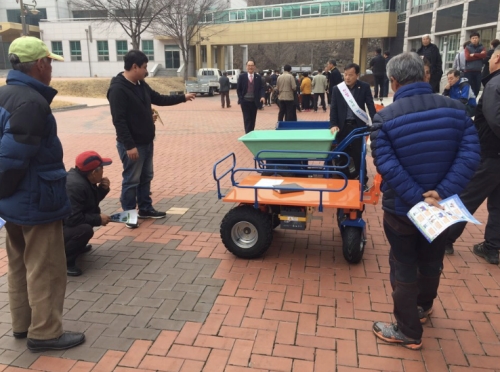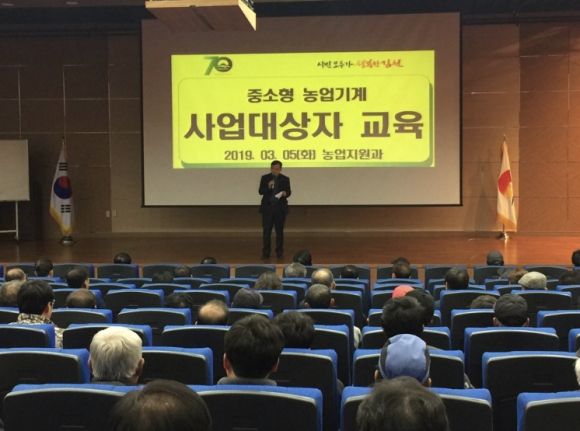 | 김천시(시장 김충섭)는 지난 3월 5일 농업기술센터 농업인교육관에서 농촌 인구의 노령화 및 부녀자의 농업기계 사용이 증가되고 다양한 농작업과 농업기계 이용률이 높고 농업인의 농기계 구입부담 경감 및 농촌일손 부족 해소를 위해 추진하는 중소형 농업기계 공급 지원사업은 2019년도 중소형 농기계 공급지원자로 선정된 농가를 대상으로 사업추진 요령 및 정산시 유의사항 등 교육을 실시하였다.