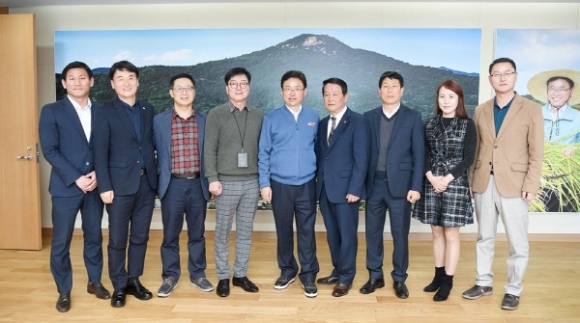 3월8일 오후 이철우 경북지사가 지사실에서 경북지역신문 총연합회 임원들과 환담 전 기념촬영을 하고 있다.김일곤 대변인과 박창배 홍보기획팀장이 배석했다.(사진제공=경북도청) |