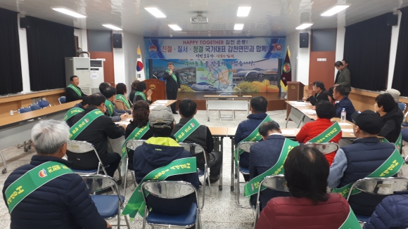 | 김천시 감천․조마 귀농귀촌인협의회(회장 석영복)에서는 지난 3월 8일 감천면사무소(면장 김천석)2층에서 정례회를 갖고 당면 현안 논의와 함께「Happy together 김천 친절·질서·청결 운동」다짐 대회를 개최하였다.