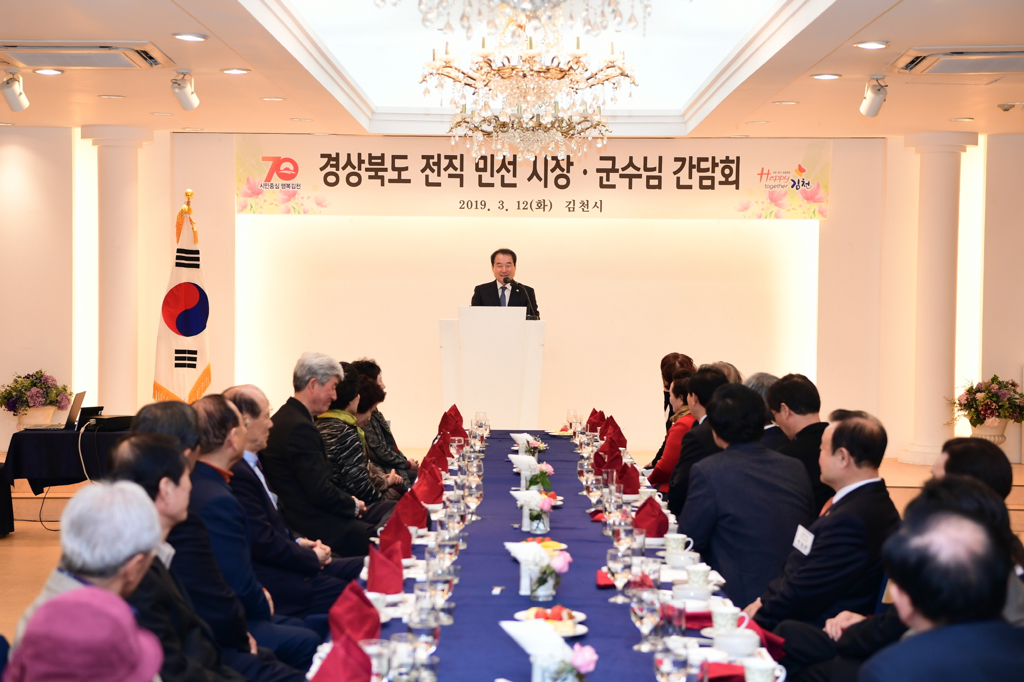| 김충섭 김천시장은 환영사에서 “선배 시장군수님들의 연륜과 그간의 공적을 높이 평가한다”고 말하면서 “시민 모두가 행복한 김천의 비전을 가지고 추진 중인 김천시정에 대한 응원과 조언”을 부탁했다.