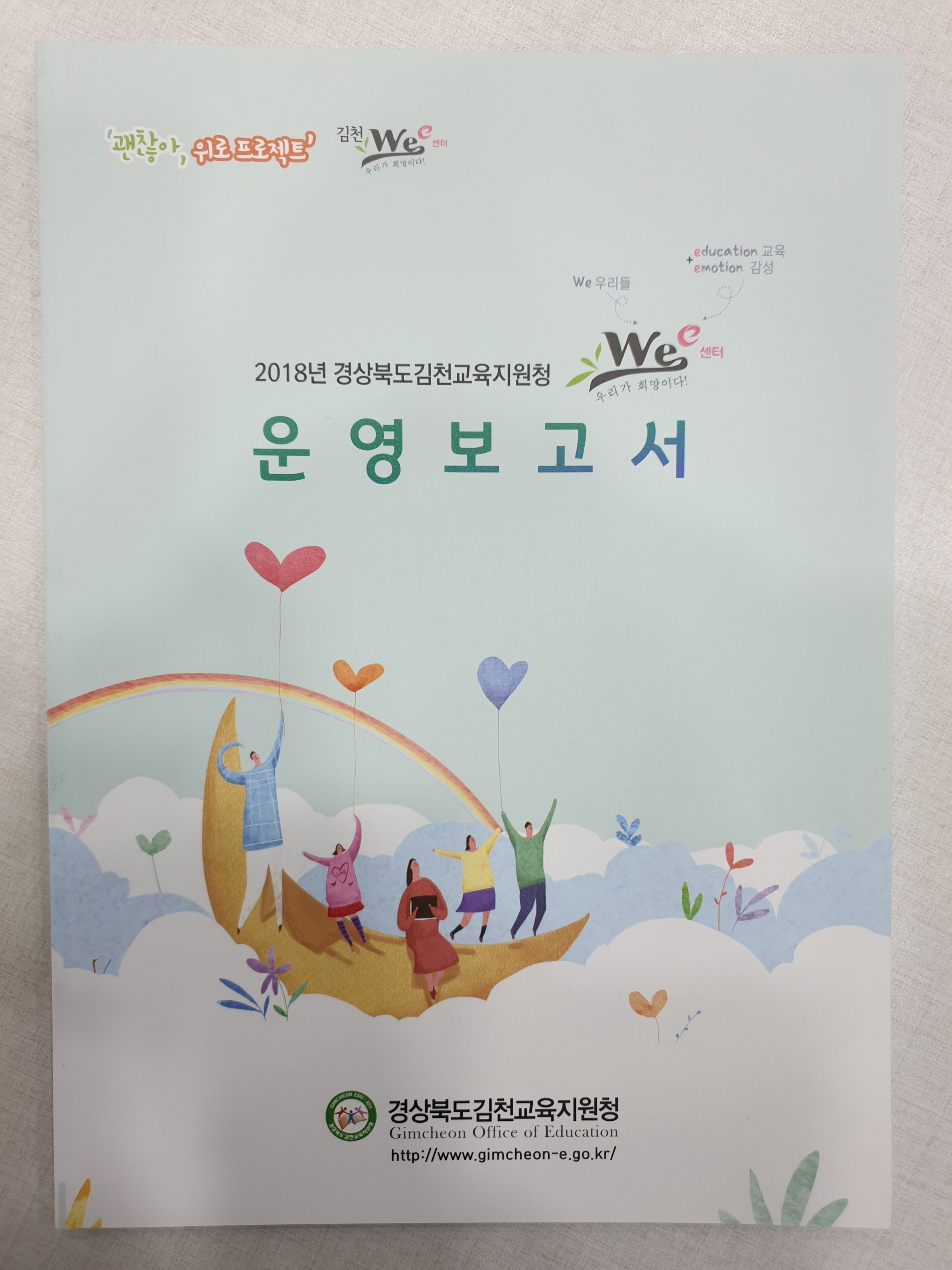 | 경상북도김천교육지원청(교육장 마숙자) Wee센터는 『괜찮아, 위로 프로젝트』2018년 김천Wee센터 운영보고서를 발간 및 배부했다.