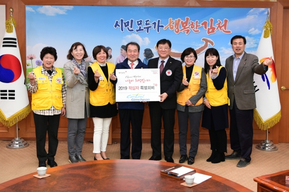 | 김충섭 김천시장은 15일 대한적십자사 경북지사에 2019년도 특별회비 100만원을 전달했다.