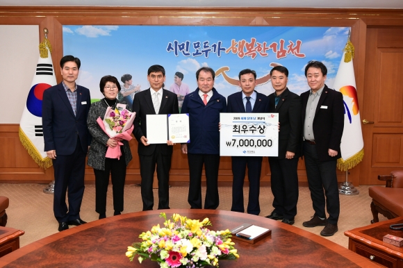 | 김천시(시장 김충섭)가 경북도에서 실시한 「2019년 세계 물의 날」기념행사(2019. 3. 15.)에서 영예의 대상인 최우수상을 수상한다.