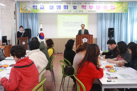 | 감천초등학교(교장 이기협)는 지난 3월 14일에 20여명의 학부모들이 참석한 가운데 본교 강당에서 ‘2019학년도 1학기 감천초등학교 학교교육설명회’를 가졌다.