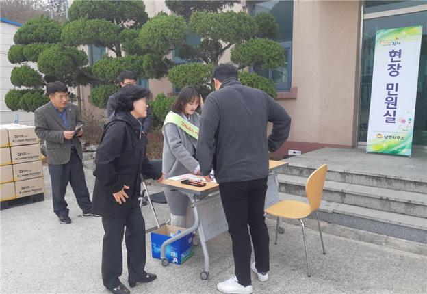 | 남면사무소(면장 박규영)는 시청 세정과 직원과 함께 15명이 지난 3월 18일 관내 기업체 리모트 솔루션을 방문하여 현장민원실을 개설하고, 전입신고를 받았으며 또한 15만 인구회복운동 캠페인을 전개하였다.