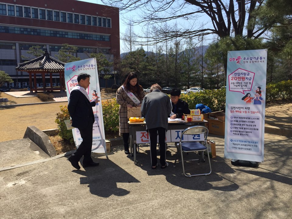 점심시간에 학교를 방문하여 신입생 및 재학생을 대상으로 교내식당 앞에서 김천愛주소갖기 운동을 추진하였으며, 주소를 이전하면 대학생이 받을 수 있는 혜택을 중점 홍보하여 전입을 유도하였다.