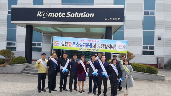 | 김천시 세정과에서는 지난 3월 18일 남면사무소와 합동으로 이달의 기업으로 선정된 리모트솔루션(주)를 방문하여 김천愛 주소 갖기 운동과 Happy Together 김천 운동 홍보캠페인을 전개했다.