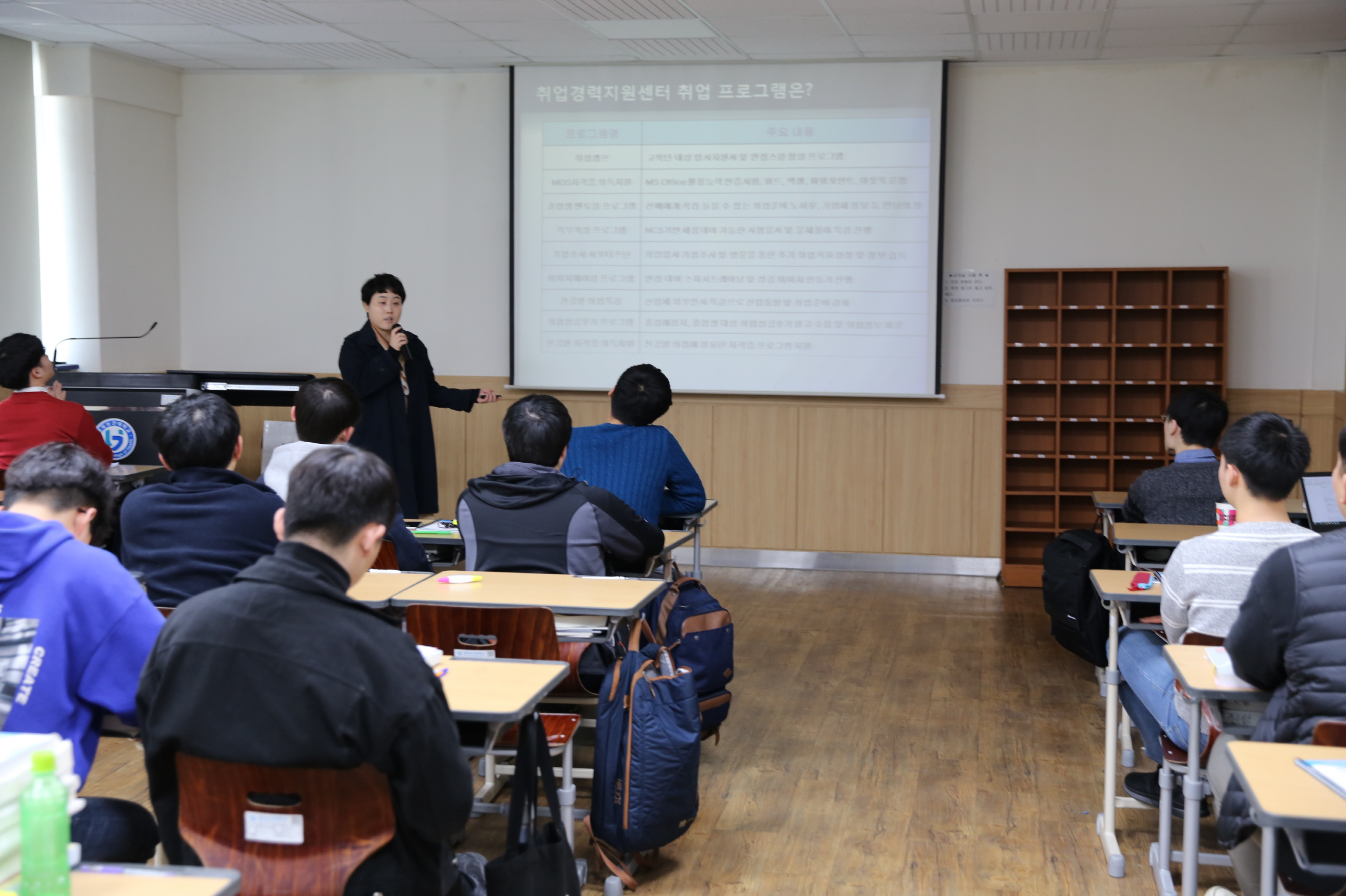 취업경력지원센터는 학과별 맞춤형 강의로 철도경영과 학생들에게 코레일 입사지원에 대한 방법과 코레일 외 계열사 등 다양한 취업처가 있다는 부분에 대한 정보제공을 하였다.