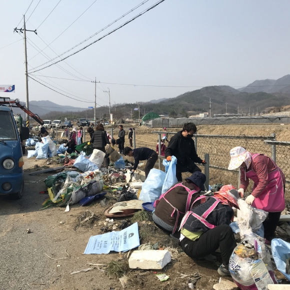 이날 환경정비는 깨끗하고 쾌적한 환경을 통해 나아가 사회분위기까지 깨끗하게 조성하자는 의미에서 시작됐으며, 그동안 방치된 영농 폐기물, 폐비닐 등 각종 생활 쓰레기 총 70여 포대를 수거했다.