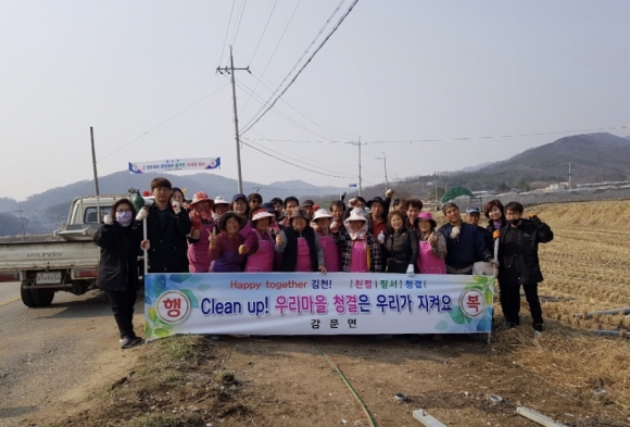 | 감문면은 지난 3월 19일 새봄을 맞이해 『Happy together 김천, “친절․질서․청결 운동”』의 일환으로 감문면 직원 및 남곡리 마을 주민 등 40여명이 참여한 가운데 폐비닐 집하장 및 주변도로 환경정비를 실시했다.