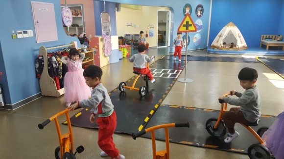 | 경상북도김교육지원청(교육장 마숙자)은 지난 3월 19일 김천유아교육체험센터 2019학년도 개소식을 김천중앙초병설유치원 원아 40여명의 아이들과 함께 가졌다. 김천유아교육체험센터는 환영누리, 탐구누리, 표현누리 3개의 영역으로 나누어져 있으며 환영누리방에는 지글보글쿡쿡, 도랑치고 가재잡고, 찰칵찰칵 3개의 체험활동, 탐구누리방에는 꾸러기놀이터, 낙서놀이터 등 9개 체험활동, 표현누리방에는 신나는 노래방, 자전거타기, 연지 찍고 곤지 찍고 등 7개 체험활동 프로그램을 설치하고 원아들에게 마음껏 상상하고 뛰어놀 수 있는 안전하고 쾌적한 환경을 제공하고 있다.